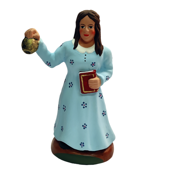 Ce santon de provence est peint à la main, vous pouvez apprécier le détail de la finition. Un santon institutrice que vous pouvez agrémenter d'autres corps de métier comme le santon de provence Instituteur disponible sur ce lien également en santon de 9 cm.